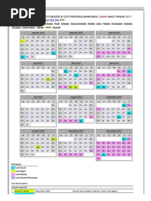 Kalendar Cuti Umum Cuti Negeri Cuti Persekolahan Bagi Sabah Tahun 2017