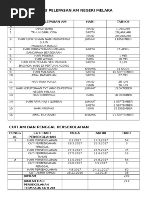 Kalendar Cuti Umum Cuti Negeri Cuti Persekolahan Malaysia 2017 Pdf