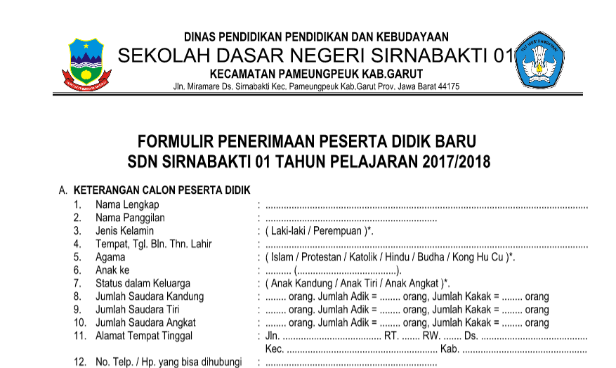 Contoh Formulir Pendaftaran Siswa Baru Sdmi Materi Pelajaran 7