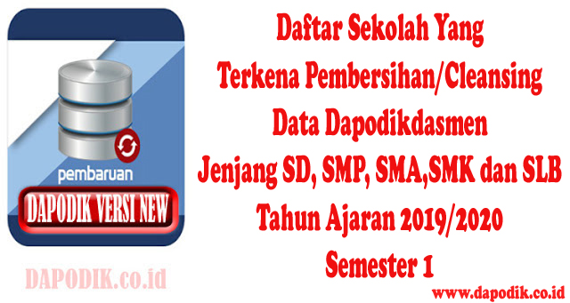 Daftar Sekolah Yang Terkena Pembersihan Cleansing Data Dapodikdasmen Jenjang Sd Smp Sma Smk Dan Slb Tahun Ajaran 2019 2020 Semester 1 Dapodik Co Id