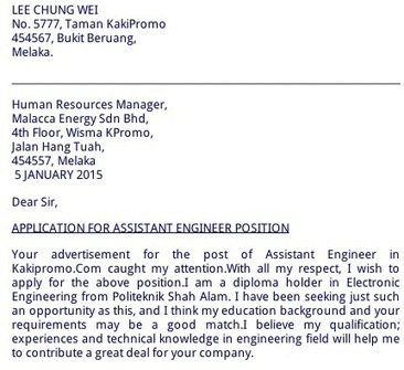 Letter Contoh Cover Letter Bahasa Melayu