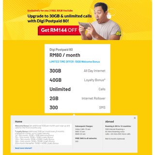 Digi Postpaid Plan 80 Unlimited Call 40gb Data High Speed Internet Shopee Malaysia