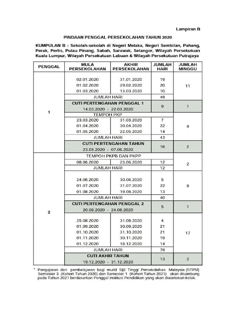Pindaan Takwim Dan Minggu Persekolahan Sesi 2020 Apdm Kehadiran