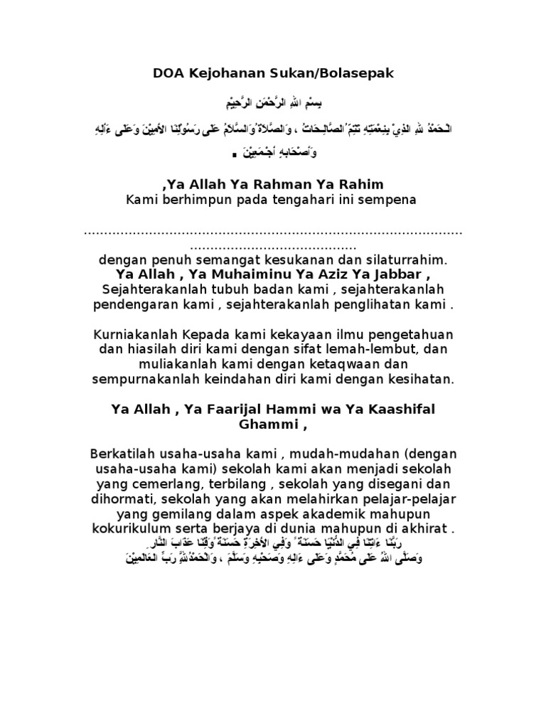 Doa Hari Sukan Tahunan Sekolah