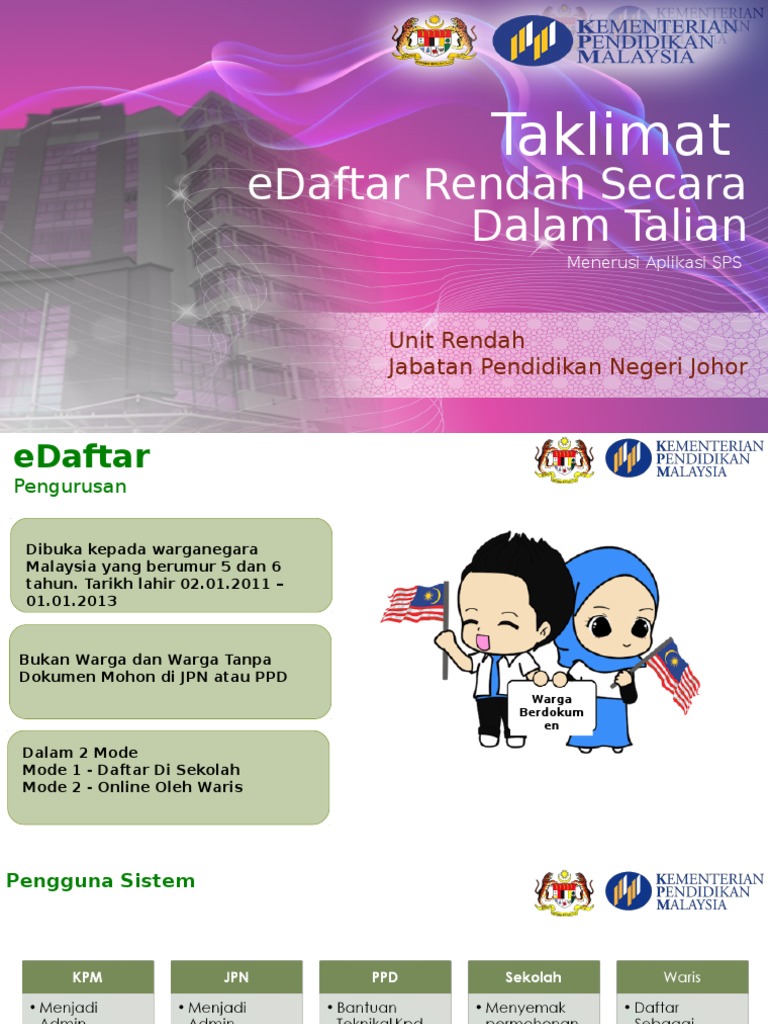 Peringatan Pendaftaran Murid Tahun 1 Tahun 2016 Dan 2017 Melalui E Doc