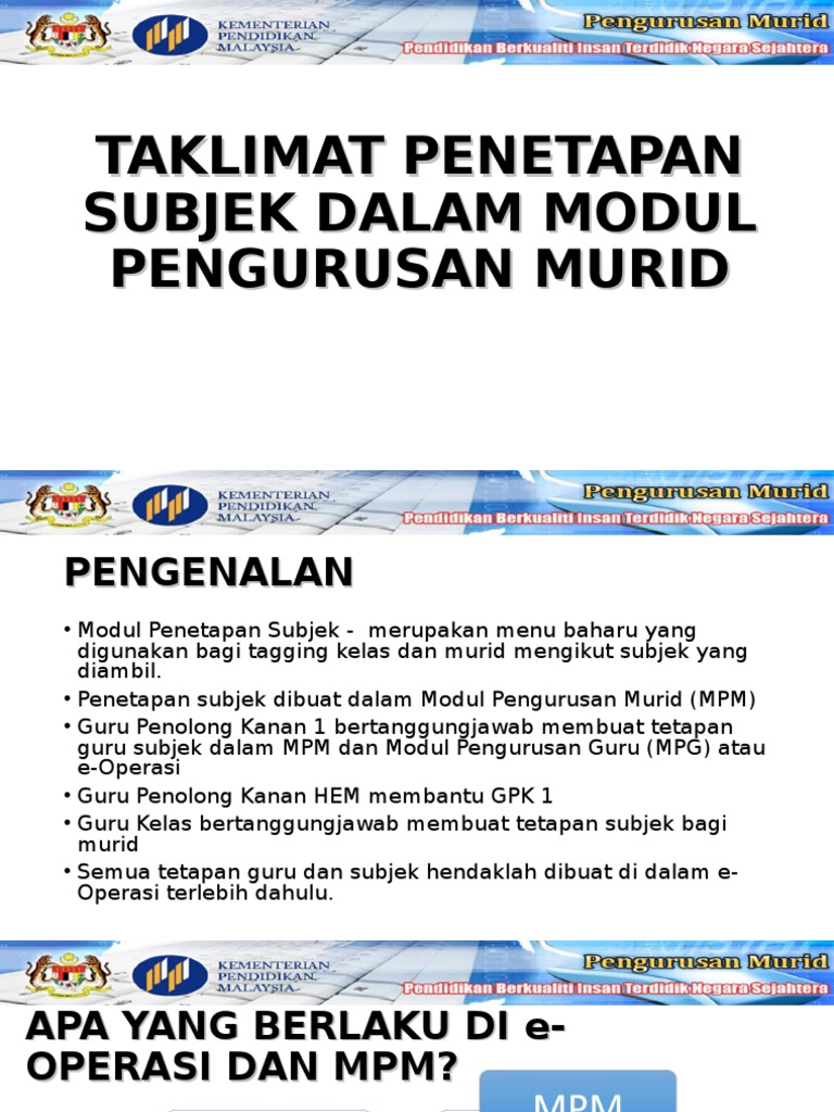 Manual Penetapan Subjek Dalam Modul Pengurusan Murid Unit Ict Dan Data Bahagian Pengurusan Sekolah Harian Kementerian Pendidikan Malaysia Pdf Free Download