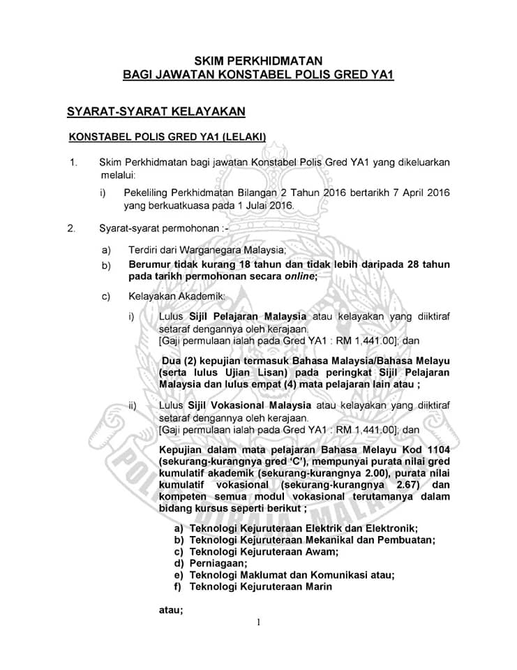 Permohonan Jawatan Konstabel Polis Pdrm Gred Ya1 Lelaki Sahaja 14 Januari 2020 Jawatan Kosong 2020