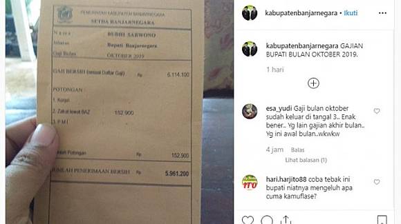 Slip Gaji Rp 5 9 Juta Viral Ternyata Segini Harta Bupati Banjarnegara