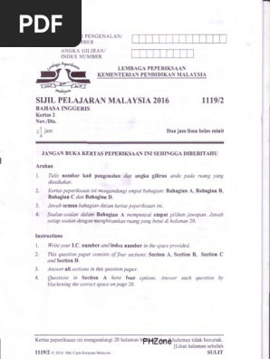Lpkpm Spm 2016 Bahasa Inggeris Kertas 1 Pdf Sulit Lehibaga Peperhcsaan Kementerian Pendidikan Malaysia Suil Pelajaran Malaysia 2016 1119 Bahasa Course Hero