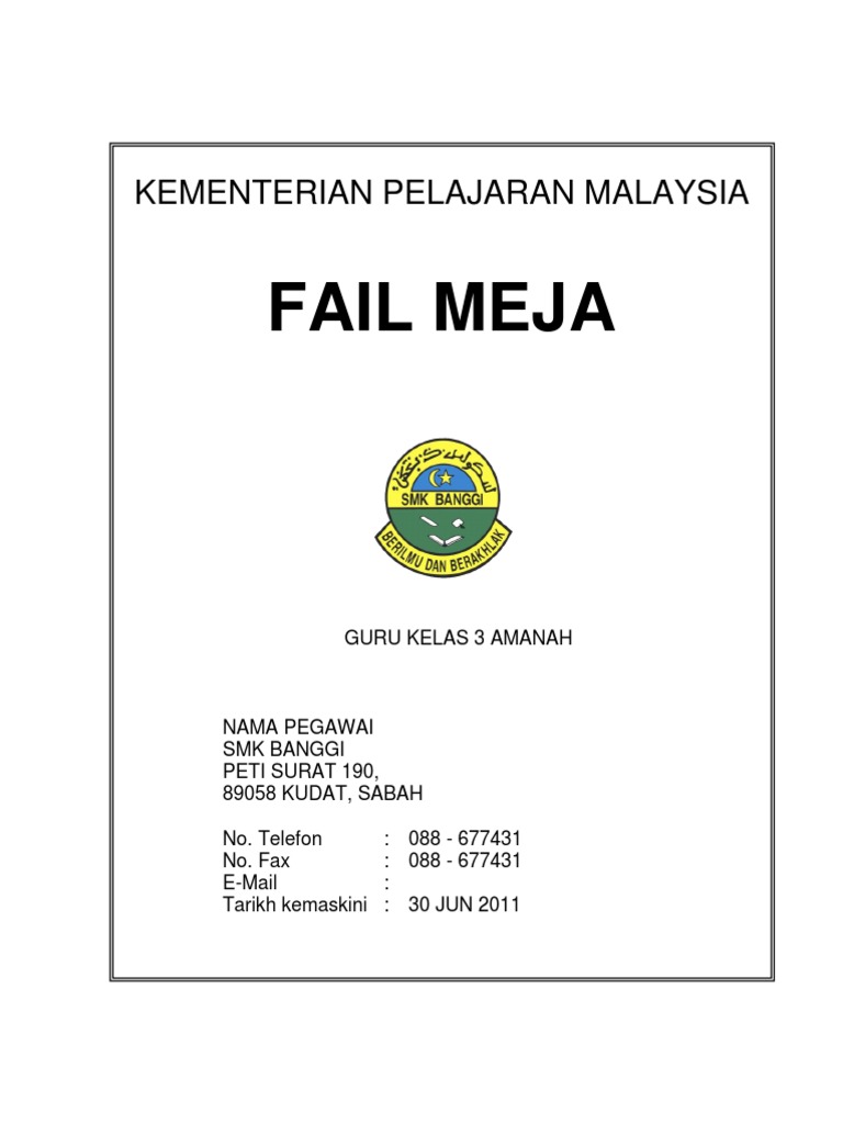 Fail Meja Jawatan Guru Mata Pelajaran