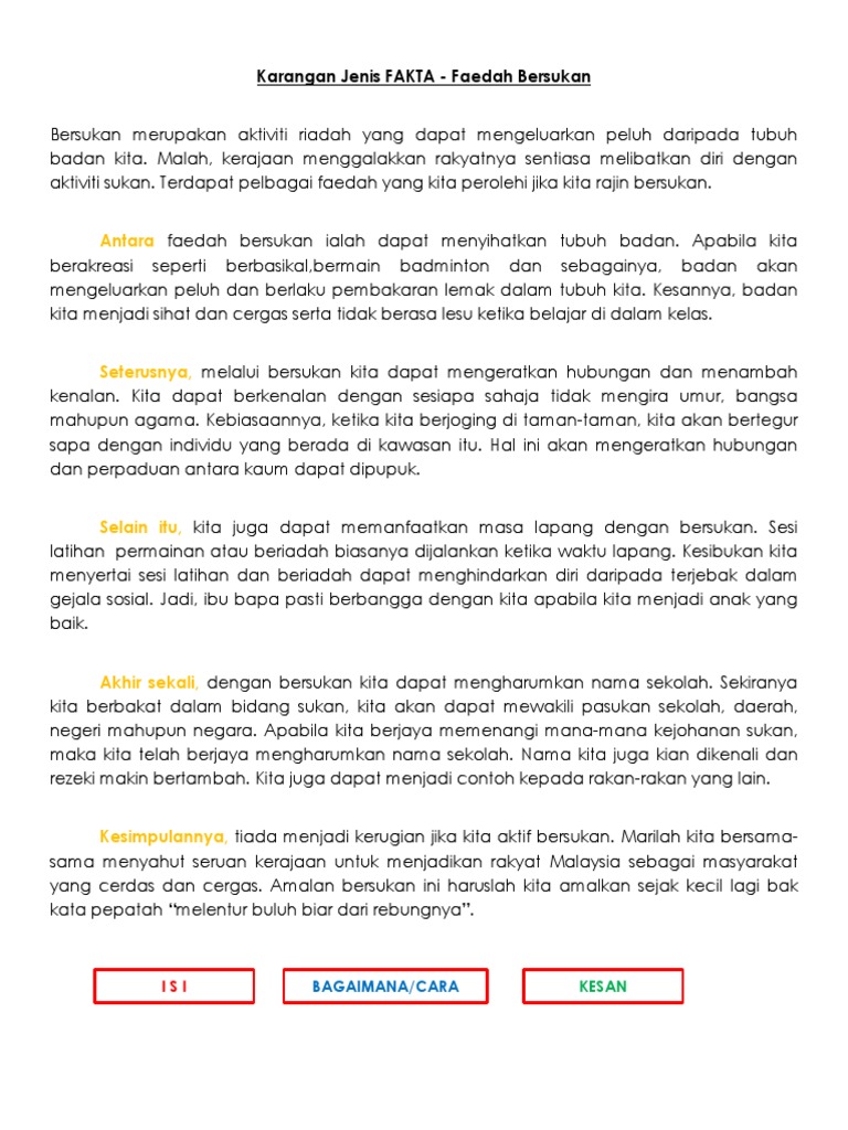 Karangan Jenis Fakta Faedah Bersukan