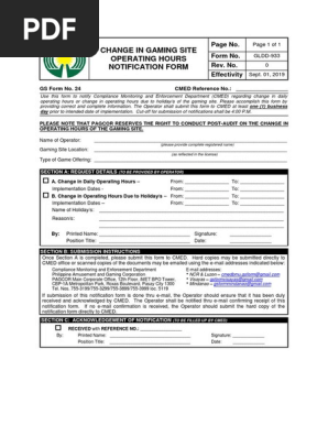 Gs Form No 24 Change In Gaming Site Operating Hours Notification Form Government Information Government