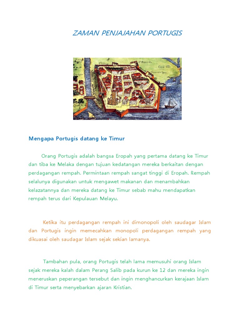 Zaman Penjajahan Portugis Di Tanah Melayu By Solehah Sharin
