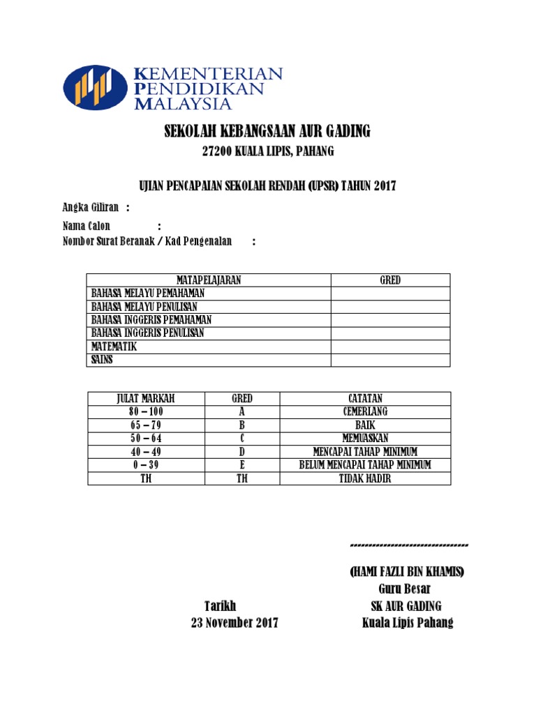 Gred Markah Upsr Terkini Sekolah Rendah Saps Ibu Bapa