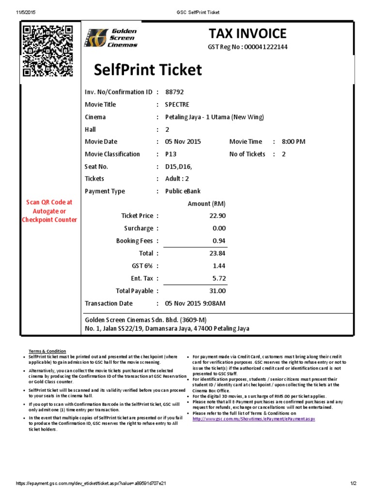 Gsc Selfprint Ticket Identity Document Ticket Admission