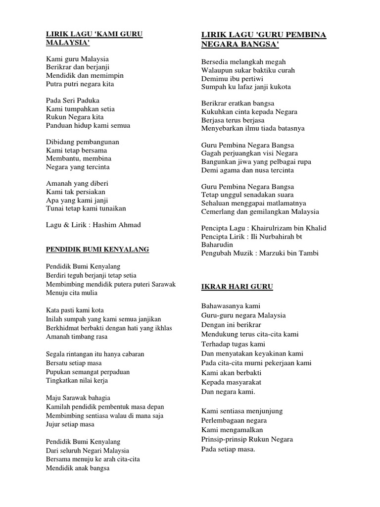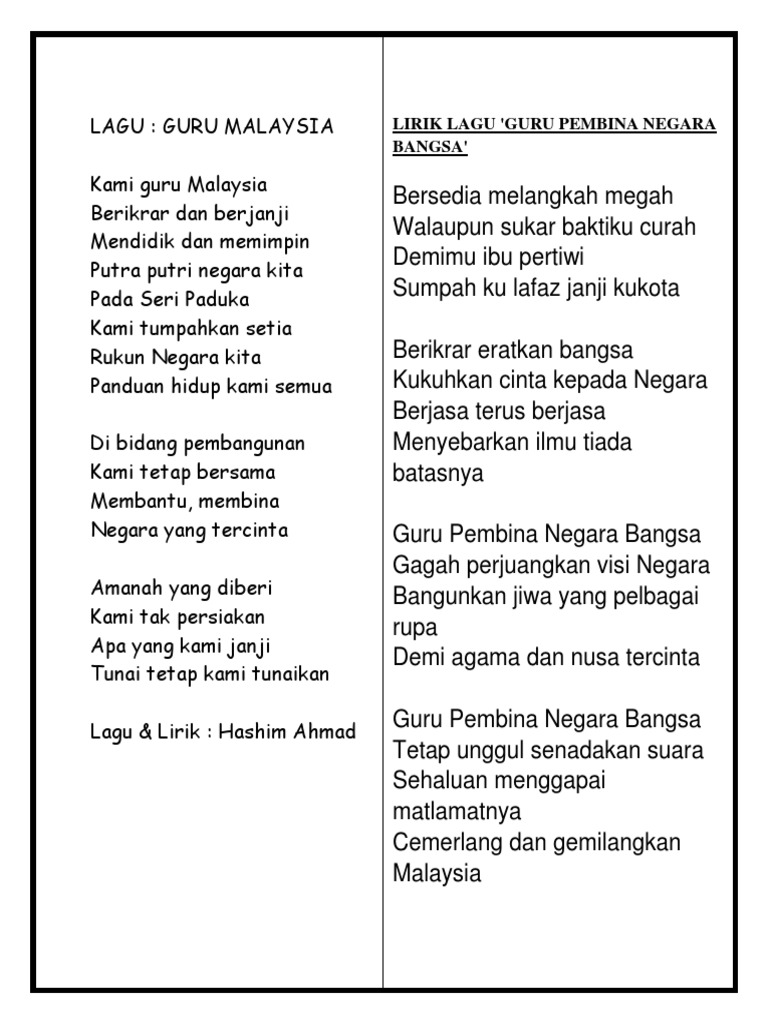 Lirik Guru Pembina Negara Bangsa